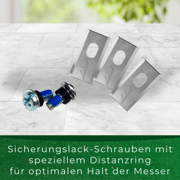 - Highest security: our knives are the only robotic mower blades according to the safety Directive DIN EN 50636 with the OTH tested!