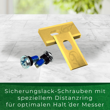 - Extra hardened knives from Green Grass Tools with screws. 2 hole - blades can be reversed and used on both sides!