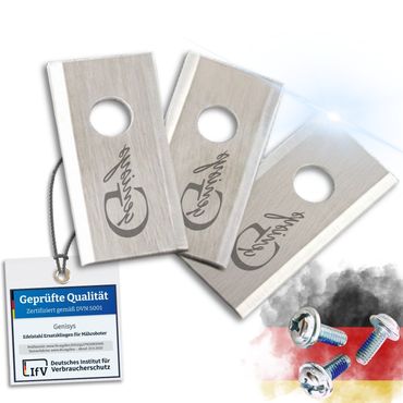 - Extra gehärteteMesser von Genisys mit Sicherungslack-Schrauben. Bruchsicher durch die Umstellung auf auf die 1-Loch Variante
