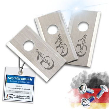 - Extra gehärteteMesser von Genisys mit Sicherungslack-Schrauben. Bruchsicher durch die Umstellung auf auf die 1-Loch Variante