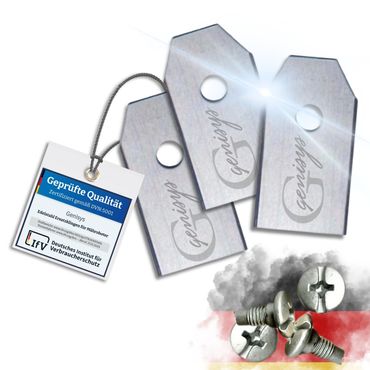 - Extra gehärteteMesser von Genisys mit Schrauben in der praktischen wieder verschließbaren Verpackung