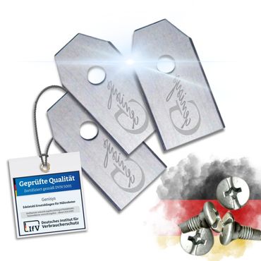 - Extra gehärteteMesser von Genisys mit Schrauben in der praktischen wieder verschließbaren Verpackung
